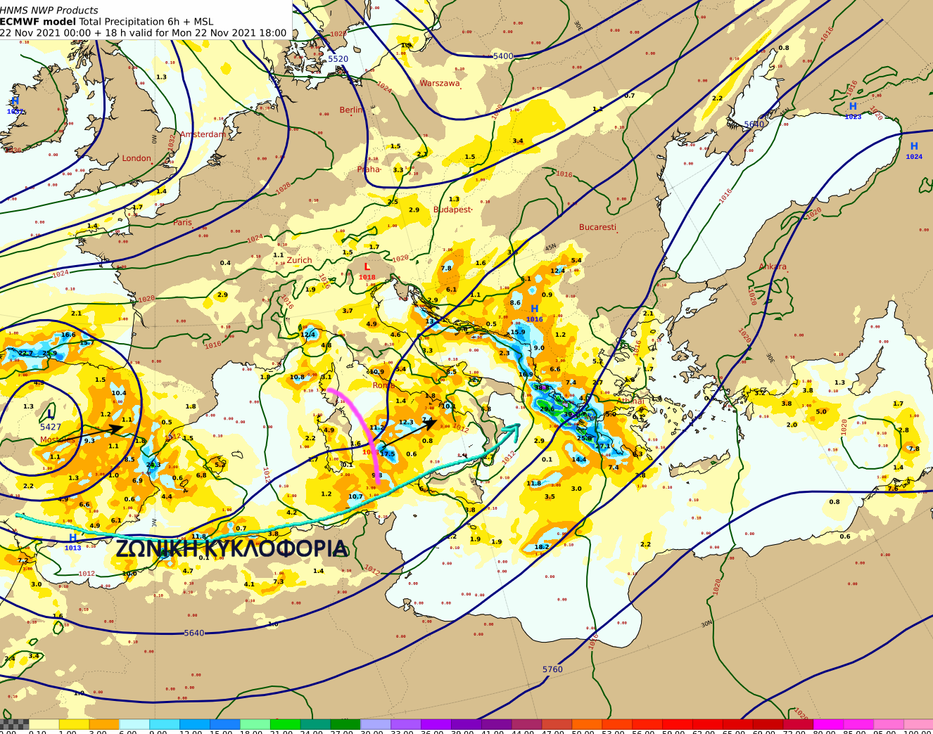 Σας ενημερώνουμε ότι σε σχετική ανάρτηση στο Twitter υπάρχει βίντεο με τα ύψη βροχής ανά 6ωρο, καθώς και δύο χάρτες με τον δείκτη EFI (Extreme Forecast Index) o οποίος μας δείχνει την επικινδυνότητα των βροχοπτώσεων σύμφωνα με τον χρωματικό κώδικα που χρησιμοποιούμε στο Meteoalarm