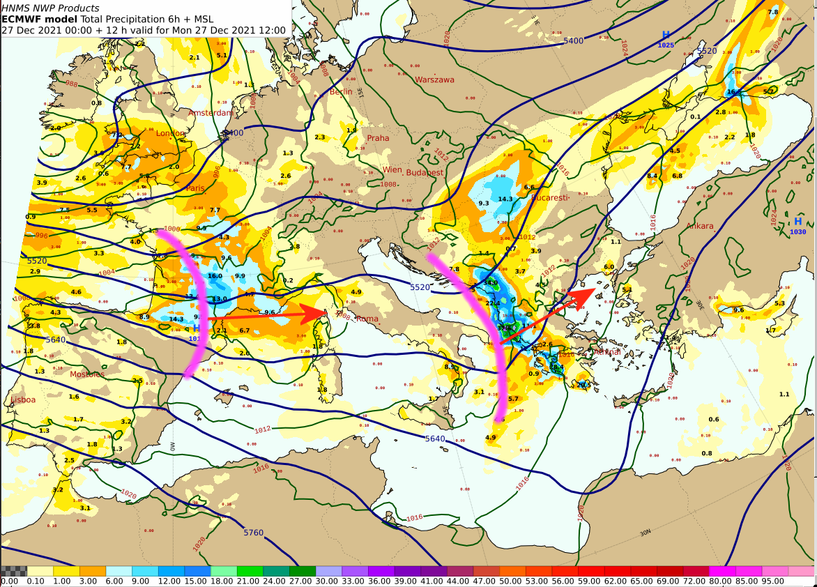 Eπιδείνωση θα παρουσιάσει ο καιρός στη χώρα μας από δύο διαταραχές στην ανώτερη ατμόσφαιρα που έρχονται από τα δυτικά και για τον λόγο αυτό εκδόθηκε έκτακτο δελτίο επιδείνωσης του καιρού . Στα μέσα της εβδομάδος θα δημιουργηθεί αποκομμένο ανώτερο χαμηλό στον χάρτη των 500 hPa και τα φαινόμενα που θα ξεκινήσουν σήμερα Δευτέρα από τα δυτικά , την Πέμπτη θα αρχίσουν να περιορίζονται στα ανατολικά. Όπως μπορείτε να παρακολουθήσετε στο Tweet που ακολουθεί, το ανώτερο χαμηλό απομακρύνεται νοτιοανατολικά από την Πέμπτη και μετά και έτσι ο καιρός θα βελτιωθεί την Παρασκευή, παραμονή της Πρωτοχρονιάς, σε όλη τη χώρα. Σύμφωνα με τα τελευταία δεδομένα ο καιρός ανήμερα την Πρωτοχρονιά θα είναι σχεδόν αίθριος στις περισσότερες περιοχές.