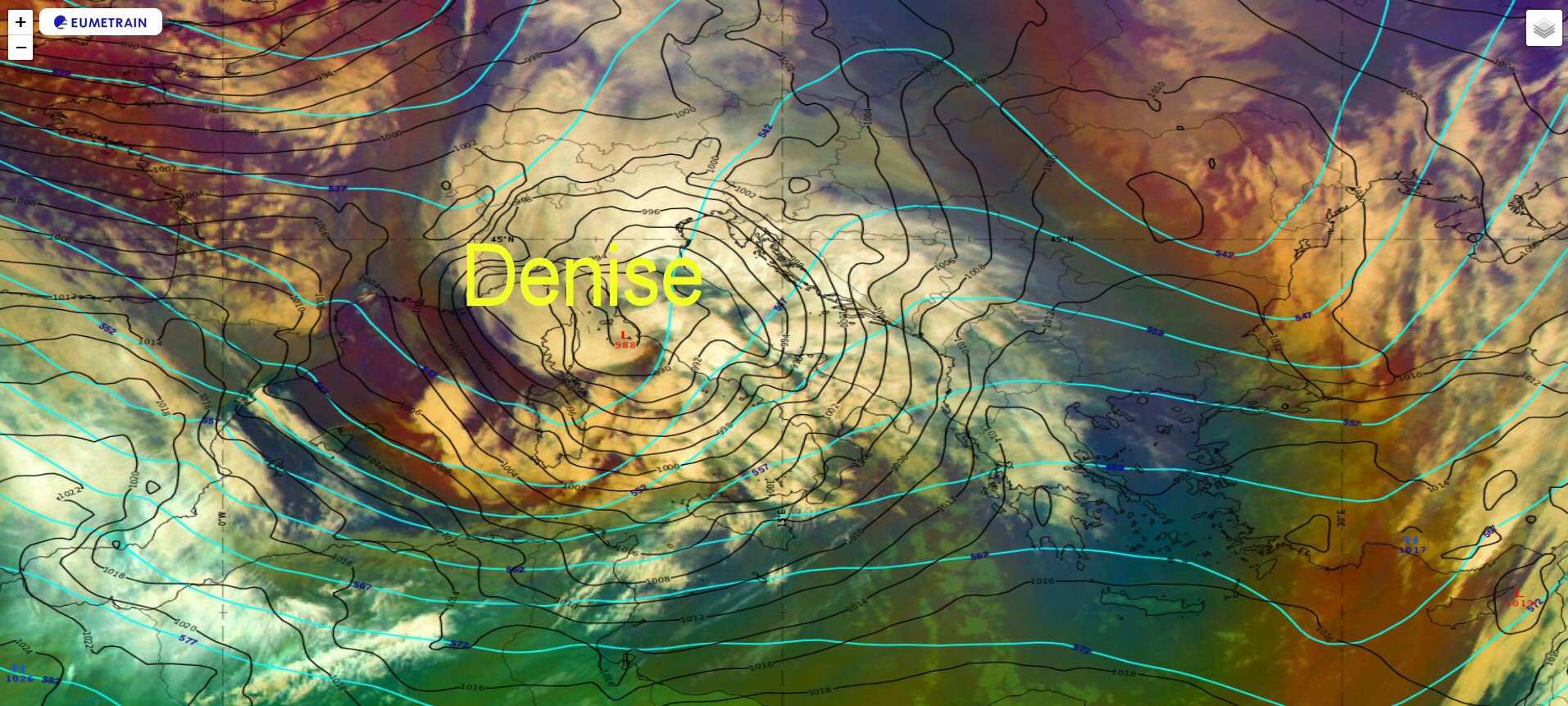 Στο παραπάνω βίντεο που συνοδεύει το tweet μπορούμε να διακρίνουμε την ενίσχυση του χαμηλού με την ονομασία "Denise" το οποίο σημείωσε βάθυνση της τάξεως 20hPa σε 24 ώρες δίνοντας του το επίσημο χαρακτηρισμό ενός "εκρηκτικού χαμηλού " . Το σύστημα αυτό από τις απογευματινές ώρες της Τρίτης 22 Νοεμβρίου 2022 , όταν αρχίζει να επηρεάζει τα δυτικά τμήματα της χώρας, μας δίνει μόνο μέχρι πορτοκαλί σήματα ύψους βροχόπτωσης καθώς ουσιαστικά αρχίζει να παρουσιάζει προοδευτική εξασθένηση , η οποία διακρίνεται στο παραπάνω βίντεο. Ωστόσο δεν μπορούμε να αγνοήσουμε το πέρασμα της μετωπικής επιφάνειας που μπορεί σε μικρό χρόνο να προκαλέσει μεγάλες ραγδαιότητες βροχής.