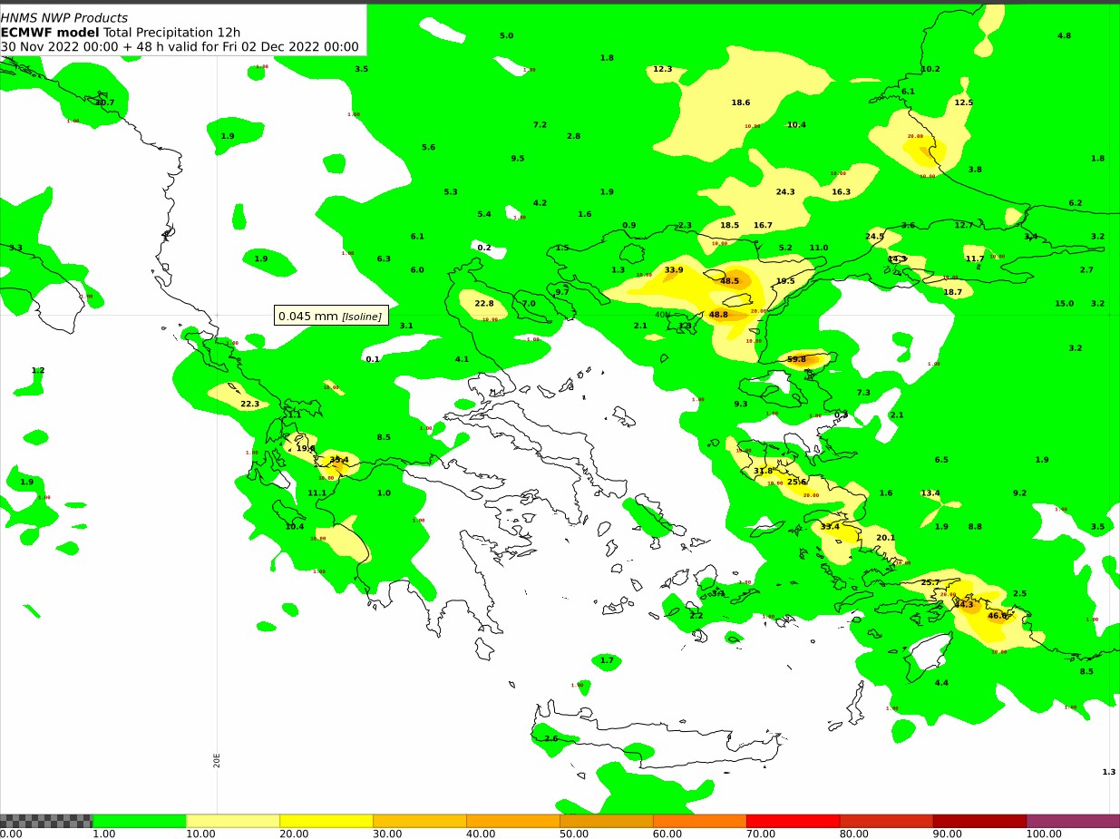 Οι έντονες βροχοπτώσεις θα συνεχιστούν στην ανατολική Μακεδονία, τη Θράκη, τα νησιά του βορείου και ανατολικού Αιγαίου και τα Δωδεκάνησα την Πέμπτη (01-12-2022) από νωρίς το πρωί μέχρι και το βράδυ.