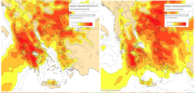 Ο δείκτης EFI για το πεδίο των ανέμων Σάββατο και Κυριακή
