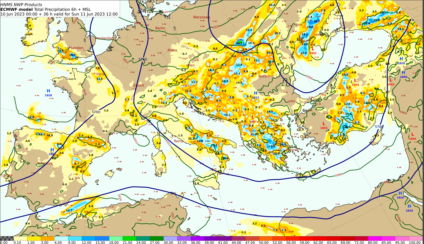 Η εξέλιξη του καιρού με τα ύψη υετού ανά 3ωρο