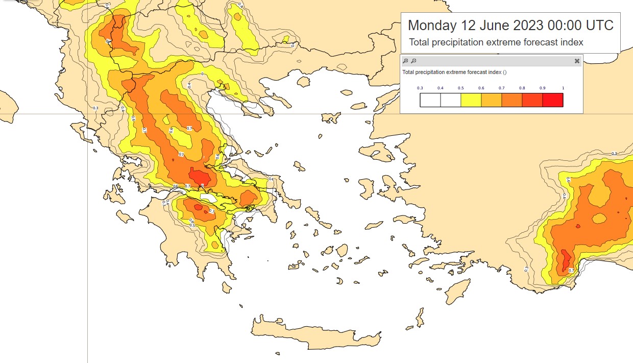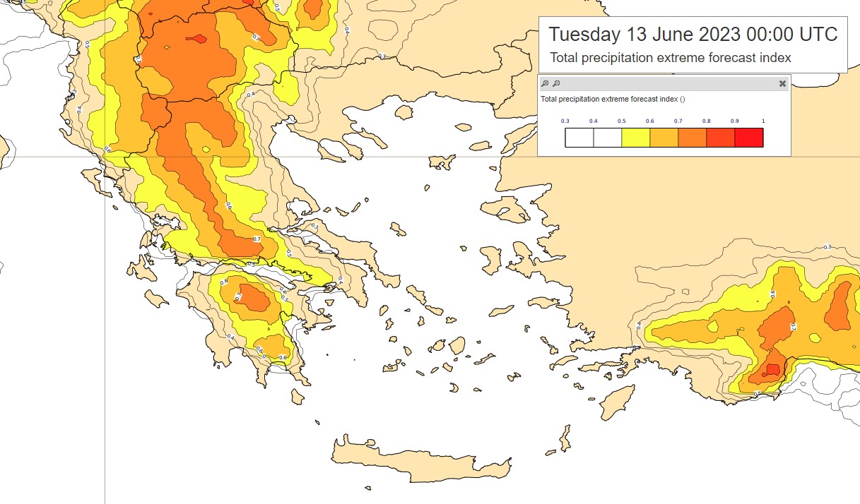 Ο δείκτης EFI ( Extreme Forecast Index) για την Κυριακή