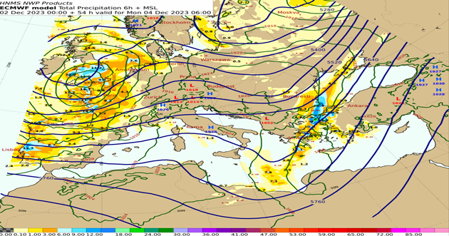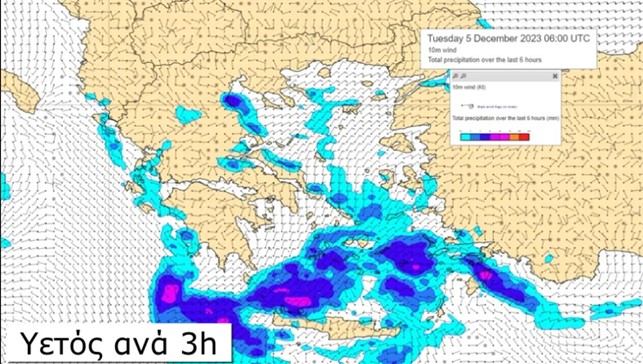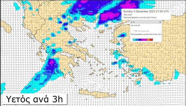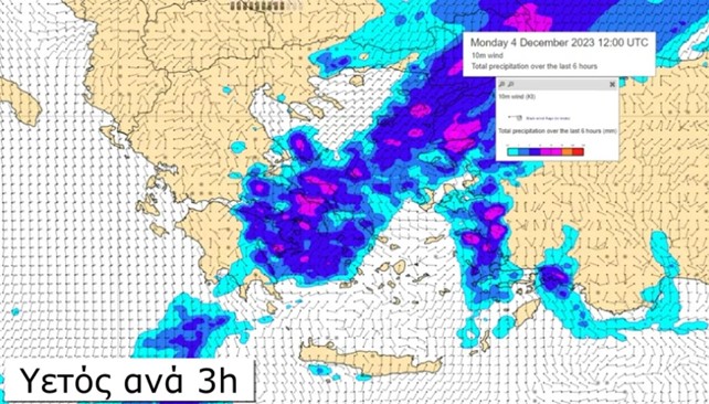 Α. Από αργά το απόγευμα της Κυριακής (03-12-2023) έως και τις πρωινές ώρες της Δευτέρας (04-12-2023) στην ανατολική Μακεδονία, τη Θράκη και τα νησιά του βορειοανατολικού Αιγαίου (περιοχή Λήμνου - Σαμοθράκης).